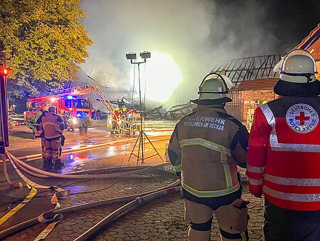 Brand auf landwirtschaftlichem Anwesen - Scheune im Vollbrand