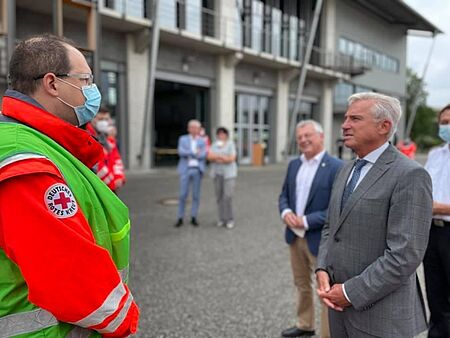 Innenminister Thomas Strobl verabschiedet unsere Helfer in den Einsatz nach Rheinland-Pfalz.