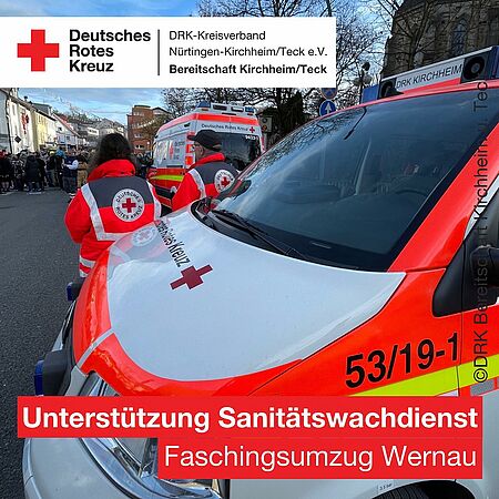 Am Samstag unterstützten wir mit vier Einsatzkräften, zusammen mit weiteren Ortsvereinen des DRK KV Esslingen, das DRK Wernau beim diesjährigen Faschingsumzug.