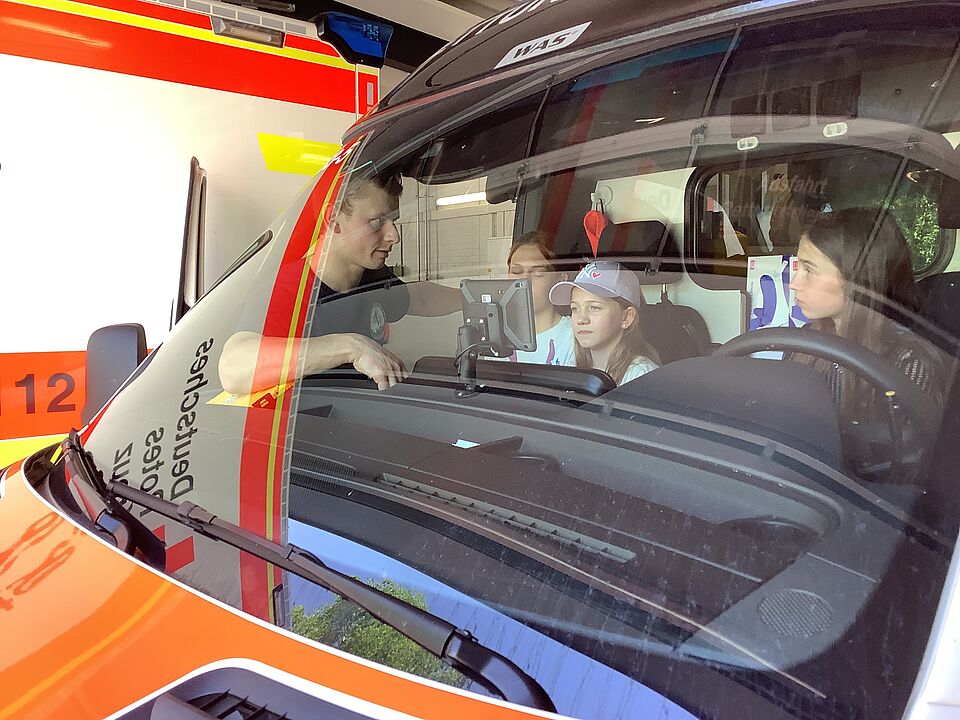 Selbst einmal am Steuer eines Rettungswagens zu sitzen, dies machten Rettungswachenleiterin Jessy Michel sowie Notfallsanitäter Anton Hauns bei ihrer Führung möglich.