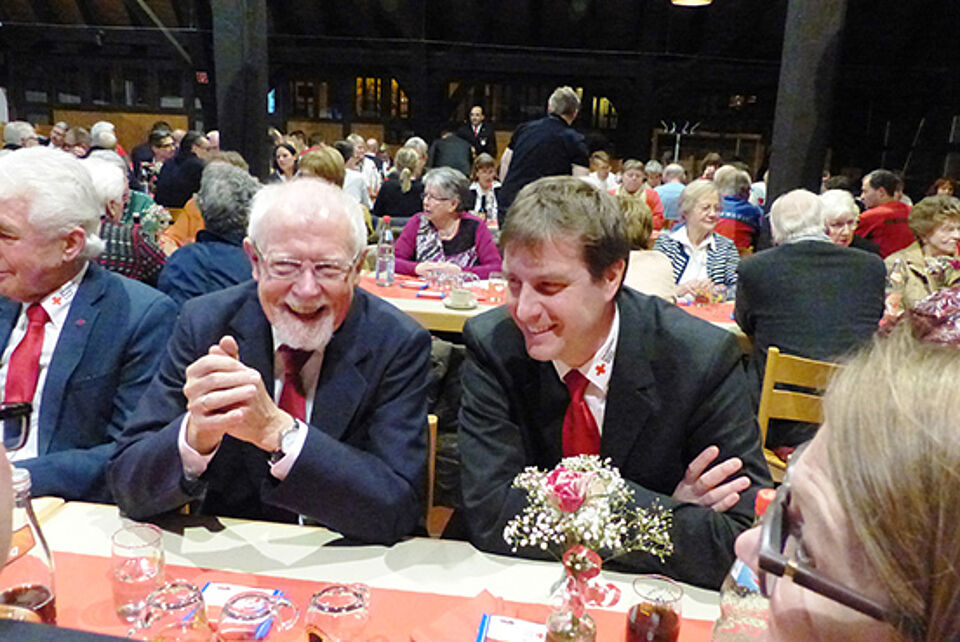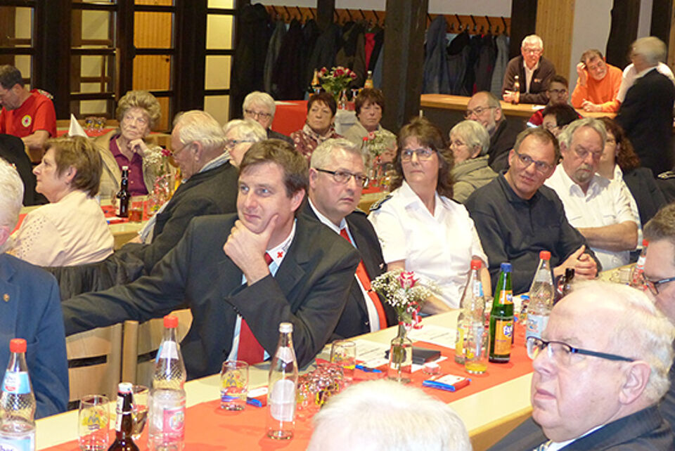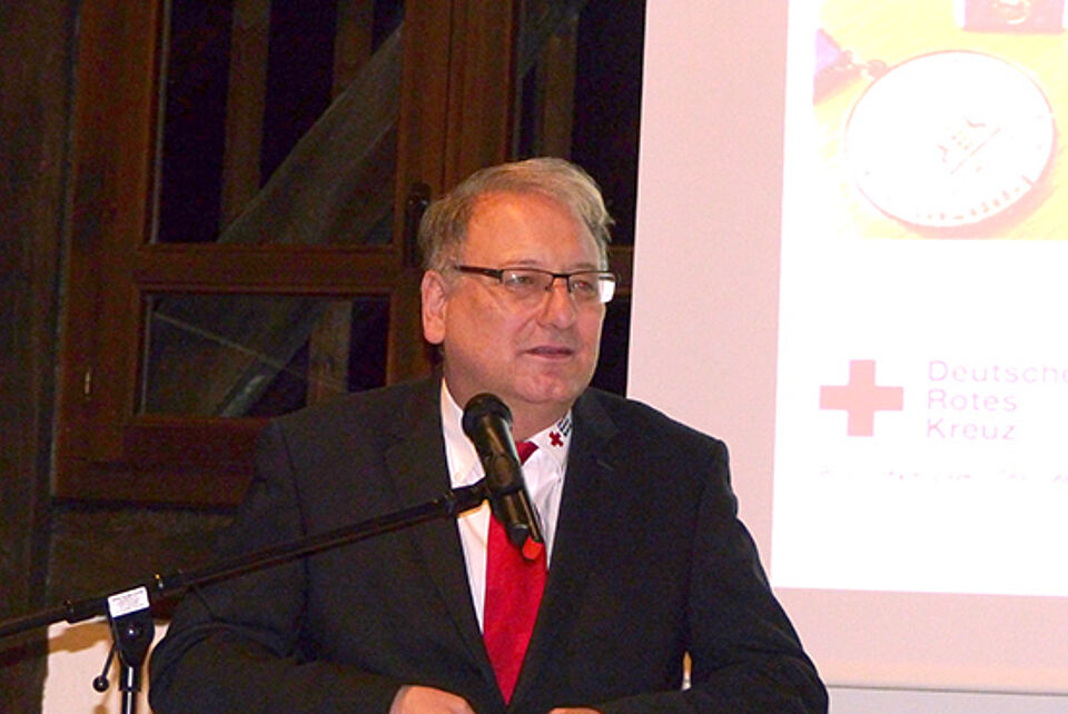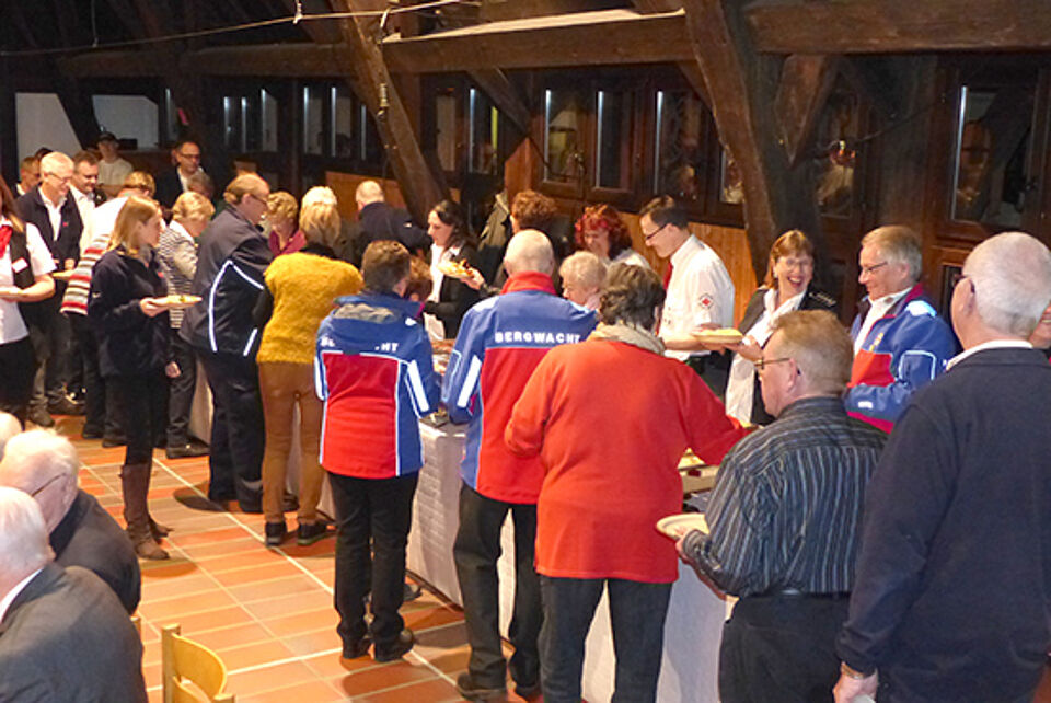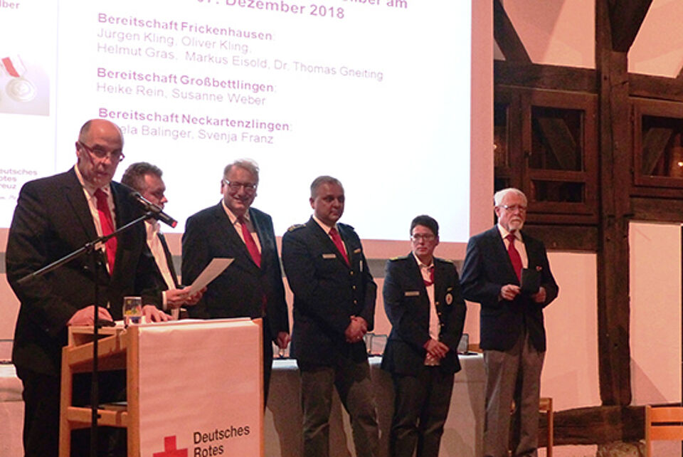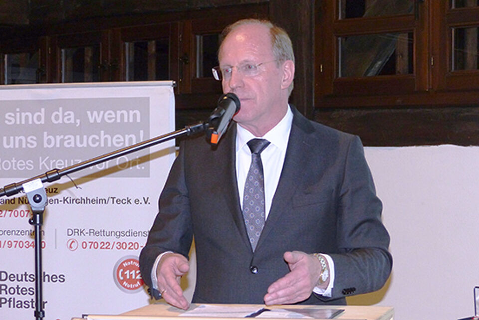 Nach einem festlichen und warmen Bankett, welches in bekannter Qualität durch den Verpflegungszug der Bereitschaft Frickenhausen – Tischardt wieder köstlich kredenzt wurde, eröffnete Rolf Siebert, Präsident des DRK Kreisverbandes, die Ehrungsveranstaltung und begrüßte Wilfried Klenk, Staatssekretär und Dr. Lorenz Menz, Ehrenpräsident des DRK-Landesverbandes Baden-Württemberg neben den anderen Gästen und Geladenen, auf das Herzlichste. Er sagte unter anderem: "Wir wissen alle, was Ehrenamt bedeutet. Ihr Einsatz ist nicht hoch genug einzuschätzen und Ihr ehrenamtliches Engagement ist aller „EhrenWert“. Aus diesem Grunde sagen wir heute auf diesem Wege – Danke“.