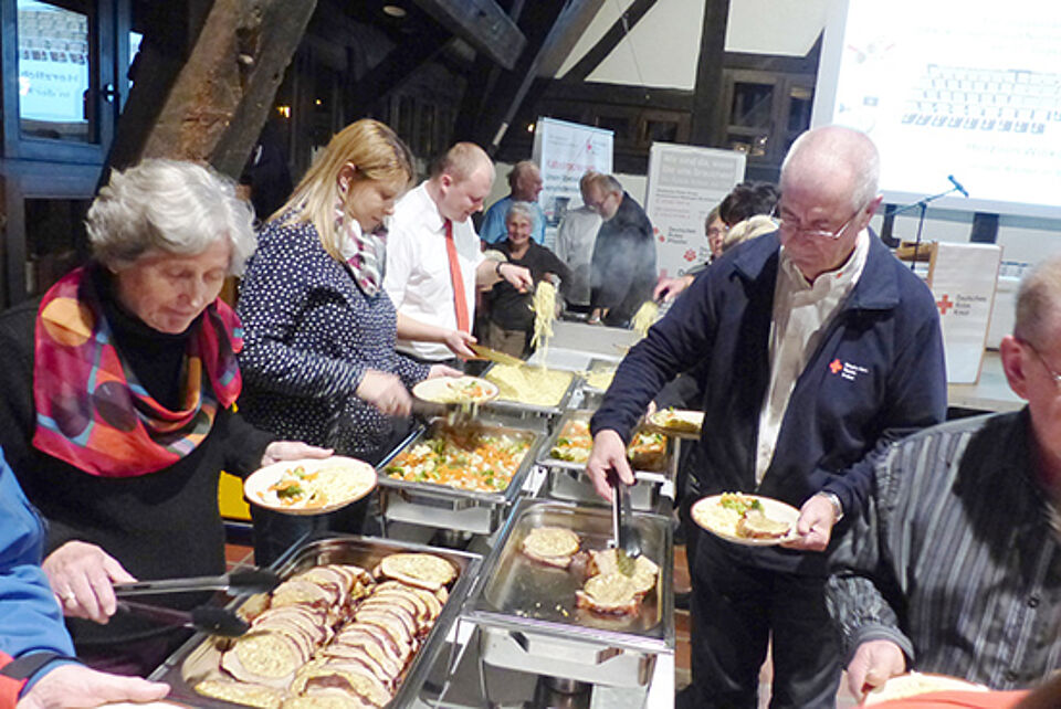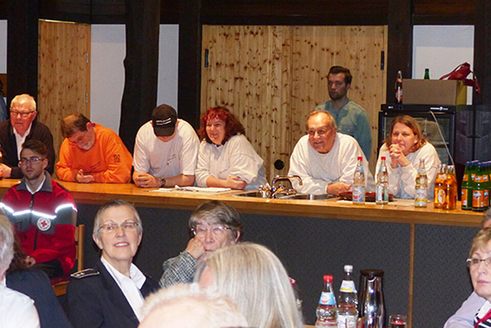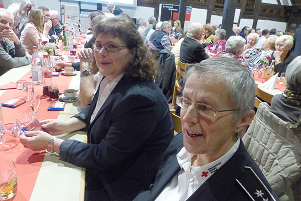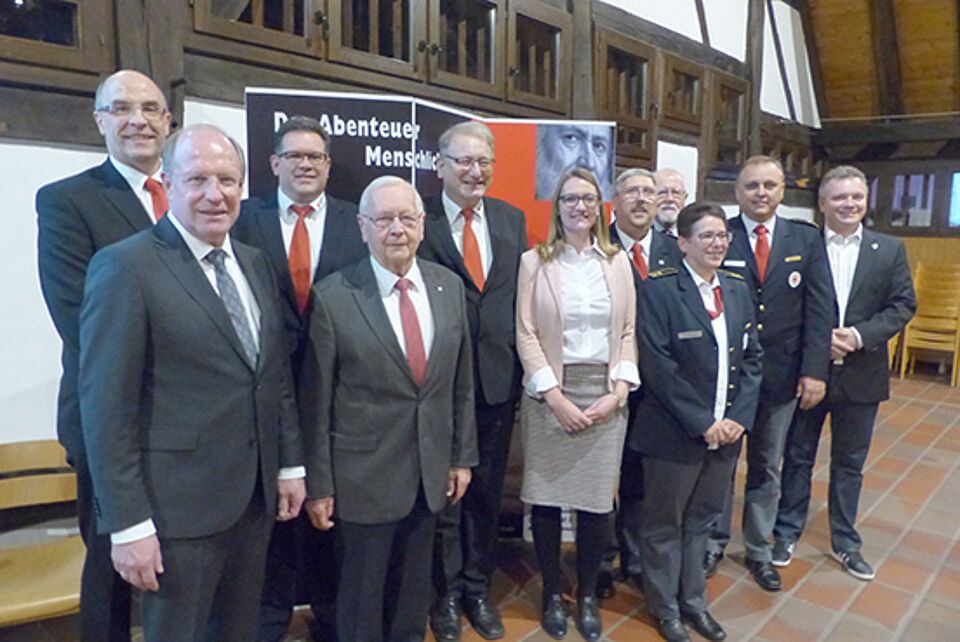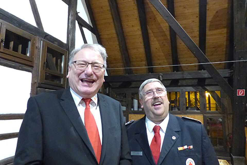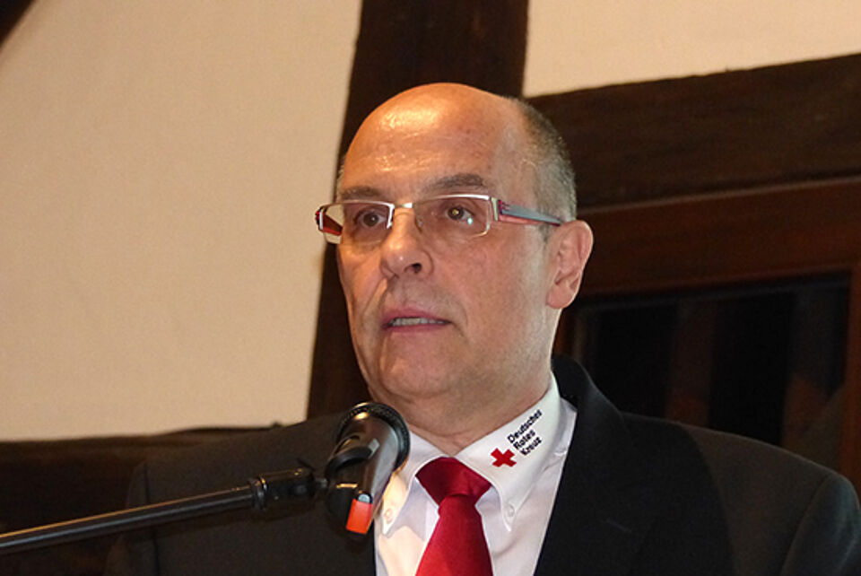 Nach einem festlichen und warmen Bankett, welches in bekannter Qualität durch den Verpflegungszug der Bereitschaft Frickenhausen – Tischardt wieder köstlich kredenzt wurde, eröffnete Rolf Siebert, Präsident des DRK Kreisverbandes, die Ehrungsveranstaltung und begrüßte Wilfried Klenk, Staatssekretär und Dr. Lorenz Menz, Ehrenpräsident des DRK-Landesverbandes Baden-Württemberg neben den anderen Gästen und Geladenen, auf das Herzlichste. Er sagte unter anderem: "Wir wissen alle, was Ehrenamt bedeutet. Ihr Einsatz ist nicht hoch genug einzuschätzen und Ihr ehrenamtliches Engagement ist aller „EhrenWert“. Aus diesem Grunde sagen wir heute auf diesem Wege – Danke“.