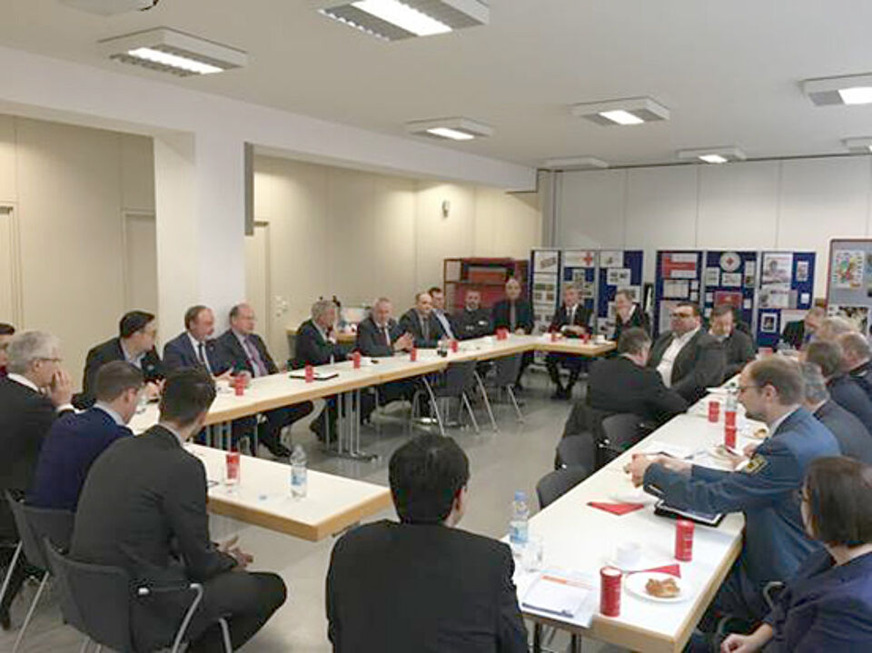 Fast zwei Stunden tauschten sich die Vertreter der Rettungsdienstorganisationen im Landkreis Esslingen im Lehrsaal der DRK-Kreisgeschäftsstelle Nürtingen mit den zuständigen „Sicherheitspolitikern“ der CDU aus. Innenminister Strobl bedankte sich dabei ausdrücklich für das große Engagement der vielen ehrenamtlichen Einsatzkräfte unserer Rettungsdienstorganisationen, die eine wesentliche Säule des gut funktionierenden Rettungsdienstes und Katastrophenschutzes in Baden-Württemberg sind.