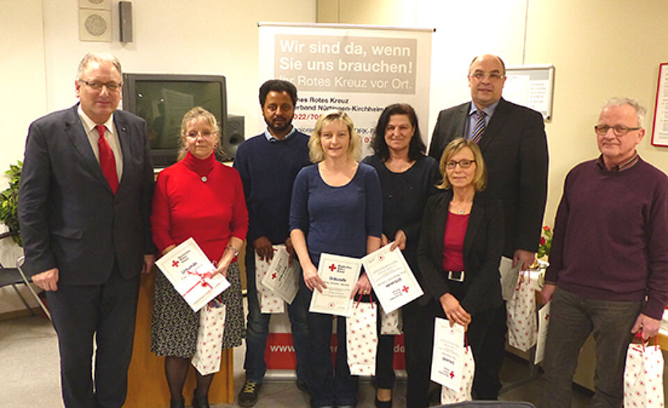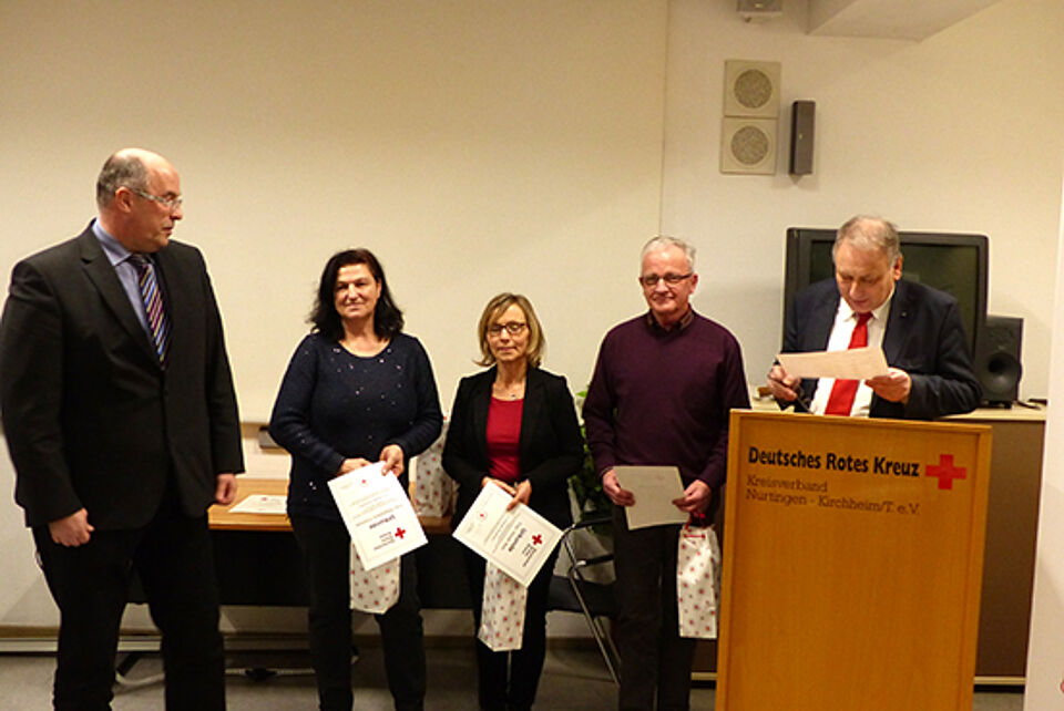 (r.rath) "Ein sehr rares Gut in unserer sehr schnelllebigen und dem stetigen Wechsel unterworfenen Zeit ist die Beständigkeit. Wenn wir in einem Berichtsjahr 15 Mitarbeiter/innen für insgesamt 130 Jahre Betriebszugehörigkeit ehren dürfen, ist dies doch aller Ehren wert und spricht für sich", sagte Rolf Siebert zu den Jubilaren im Rahmen des Neujahrsempfanges für alle Mitarbeiterinnen und Mitarbeitern beim Deutschen Roten Kreuz, Kreisverband Nürtingen-Kirchheim/Teck .e.V. am Mittwoch, den 18.01.2017.