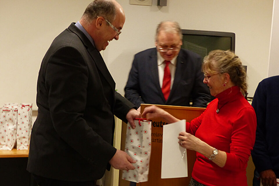 "Es ist an der Zeit, einfach mal kurz inne zu halten um Danke zu sagen. Danke für die geleistete Arbeit, das gezeigte und gelebte Engagement und den vielen kleinen "Selbstverständlichkeiten", welche im vergangenen Jahr gemeinsam erfolgreich gemeistert wurden", sagte Rolf Siebert, Kreisverbandsvorsitzender beim Kreisverband Nürtingen-Kirchheim/Teck e.V. vom Deutschen Roten Kreuz. Er ließ es sich nicht nehmen am Ende seiner Ansprache, in welcher er auch das vergangene Jahr nochmals kurz Revue passieren ließ, zusammen mit Klaus Rau, Kreisgeschäftsführer, sich bei den Jubilaren persönlich und im Auftrag des Vorstandes recht herzlich für die Treue zu bedanken. Im Anschluss daran wurden alle Teilnehmerinnen und Teilnehmer zu einem guten Essen, welches von den Mitgliedern der DRK Kochgruppe Tischardt in bewährter Weise und natürlich selbst gekocht und köstlich aufgetischt wurde, eingeladen.